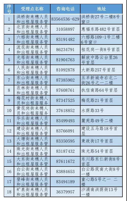 二、越秀区2020年来穗人员随迁子女积分制服务受理点一览表
