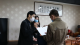 △我校执行校长卢伟榜(左一)在向省人才局四级主任科员段俊峰(右一)汇报我校疫情防控工作情况