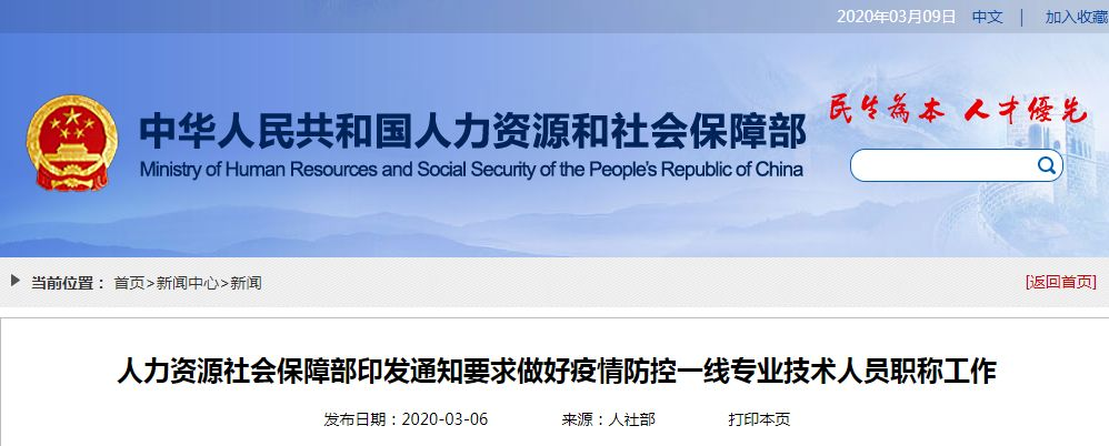 人力资源社会保障部印发通知要求做好疫情防控一线专业技术人员职称工作