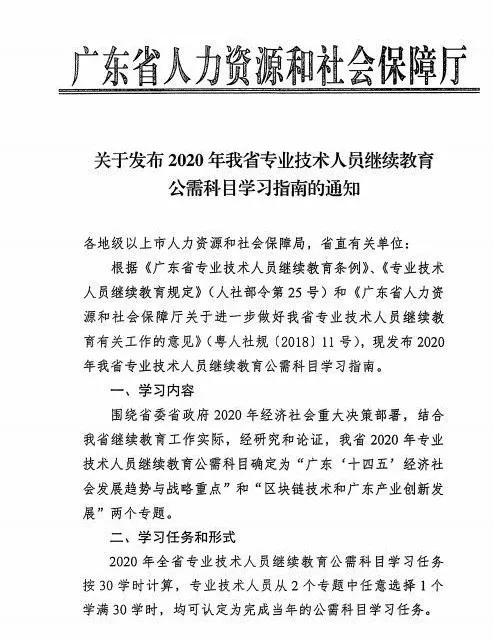 关于2020年广东省专业技术人员继续教育公需科目学习指南通知