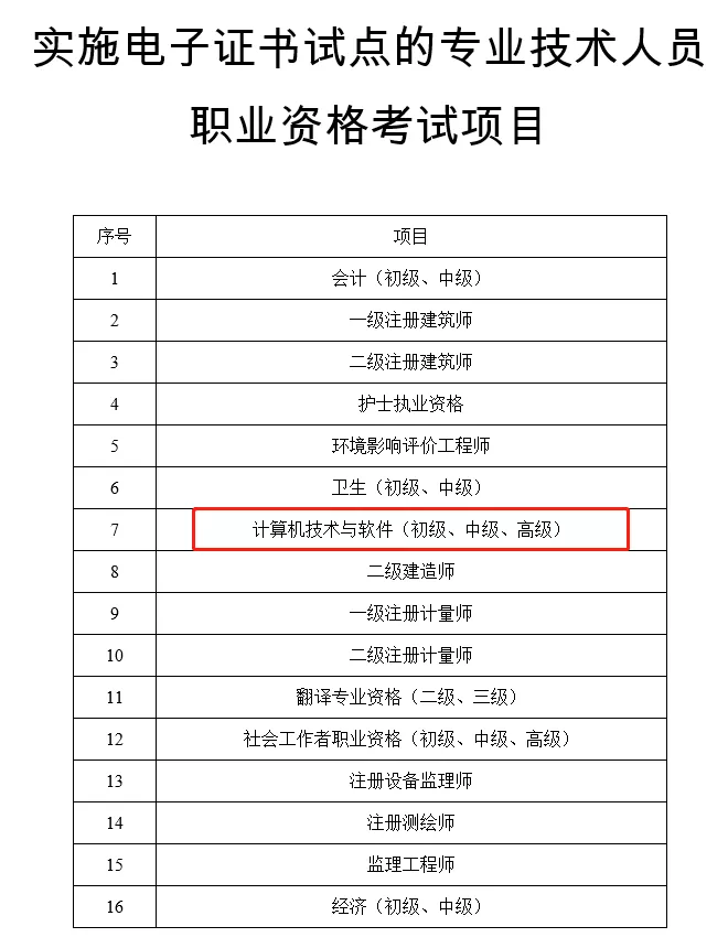 3月20日,广东人事考试网发布开展专业技术人员职业资格电子证书试点工作的通知,通知里明确包含软考等32项专业技术人员职业资格考试项目实施电子证书试点。