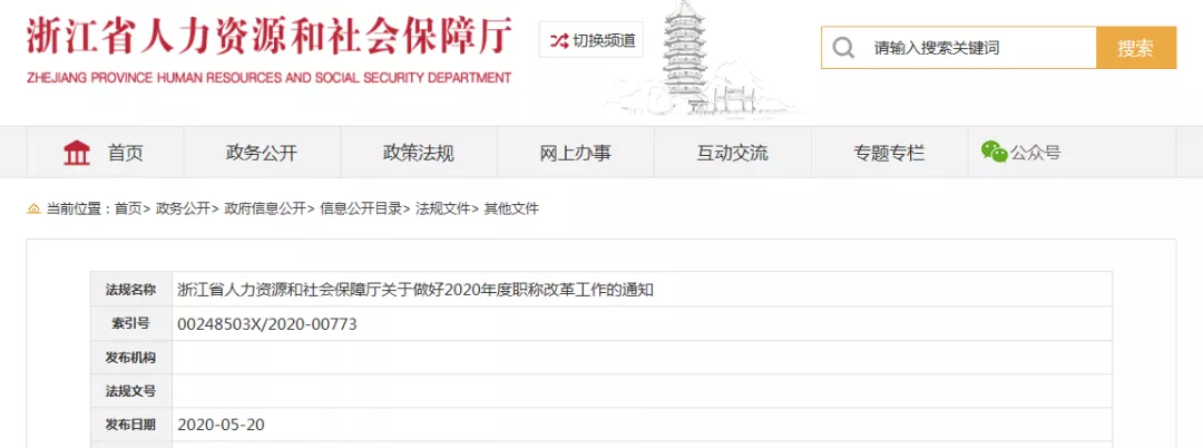(三)相关资料下载。评审工作相关表格见附件,可在“浙江政务服务网—高级职称评审与专技考试”栏目下载。其他有关评审要求和程序未在本通知中明确的,仍按照省人力社保厅2019年度职称改革工作的通知中相关要求执行。附件:2020年度高级职称评审计划浙江省人力资源和社会保障厅2020年5月8日