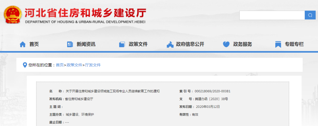 近日,河北省住建厅发布《关于开展住房和城乡建设领域施工现场专业人员继续教育工作的通知》,确保