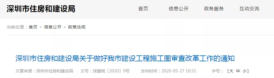 5月27日,深圳市住建局发布《关于做好我市建设工程施工图审查改革工作的通知》。