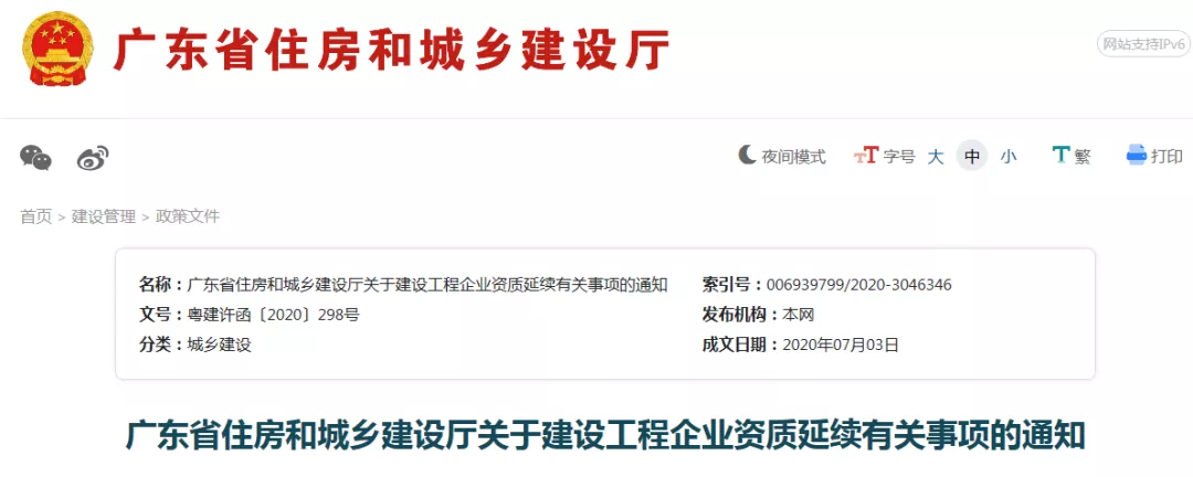 广东省住房和城乡建设厅关于建设工程企业资质延续有关事项的通知