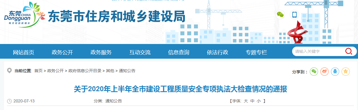 东莞:涉及122个工地,通报上半年大检查结果
