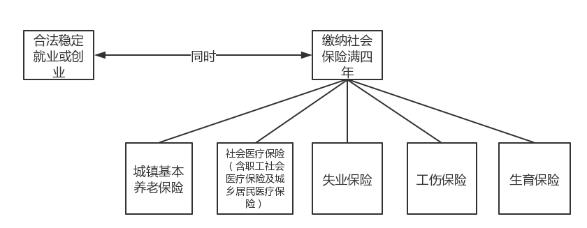 (三)在本市合法稳定就业或创业并缴纳社会保险满4年