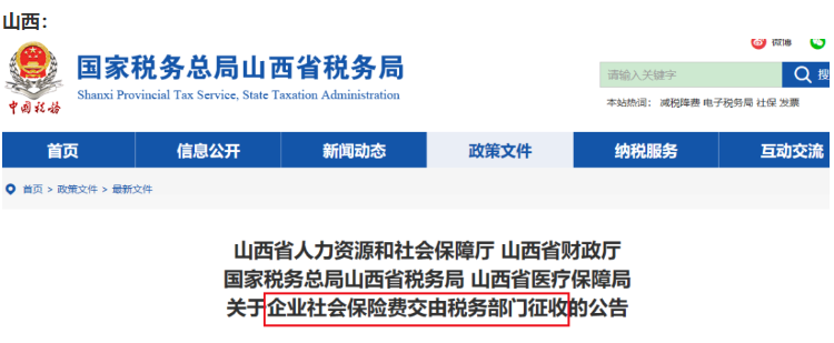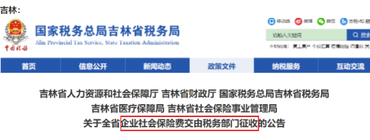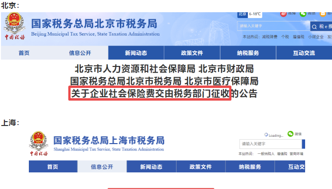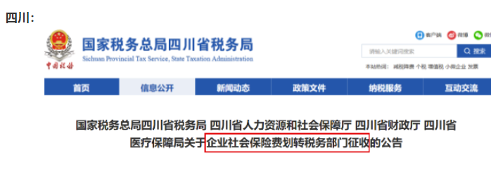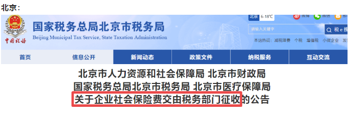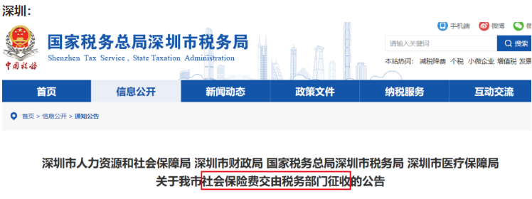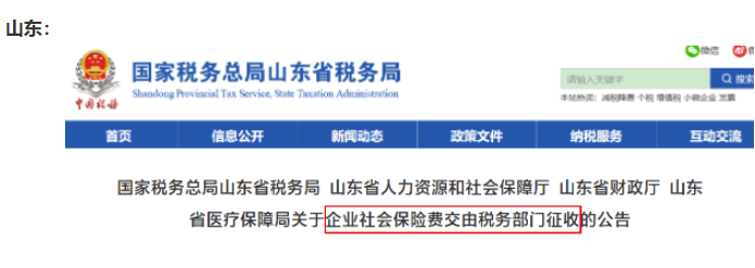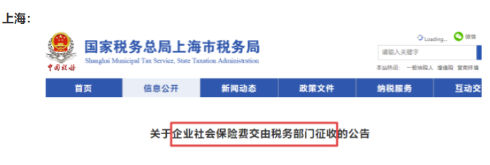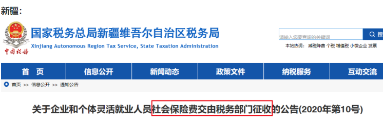 自2020年11月起,社会保险费交由税务部门统一征收!全国“一盘棋”!除部分已实施地区外,目前有以下地区集体行动、统一通知: