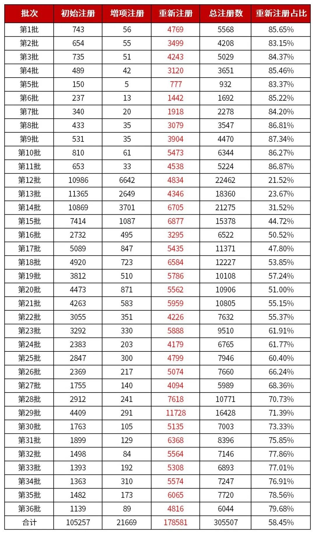 倒也不必惊慌于75万这个数字。从注册数据来看,重新注册占比高达58.45%,最高的一批甚至达到了87.34%。