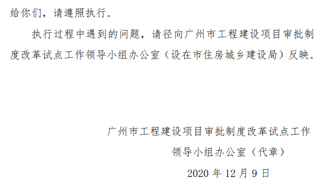 广州市工程建设项目审批制度改革试点工作领导小组办公室(代章)