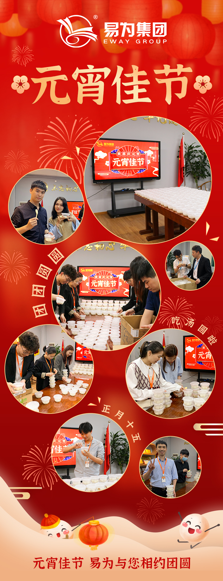 元宵节,又称上元节、小正月、元夕或灯节,农历正月十五,是新年的第一个月圆之夜。古时团圆欢聚,赏灯吃元宵,今日易为集团给各位员工送上汤圆甜汤,一口汤圆一口圆,天上月圆人间圆。