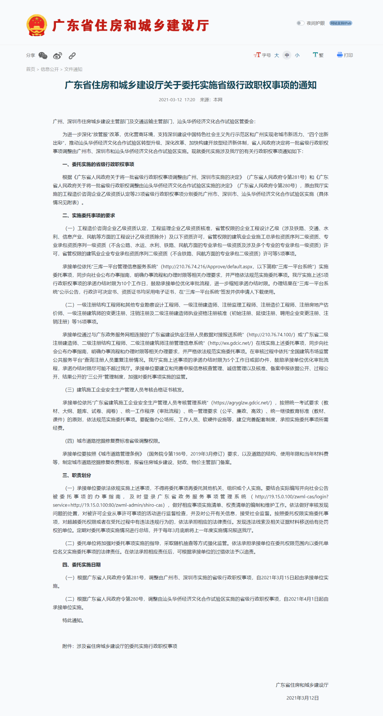 附件:1.广东省住房和城乡建设厅关于委托实施省级行政职权事项的通知(3月12日)