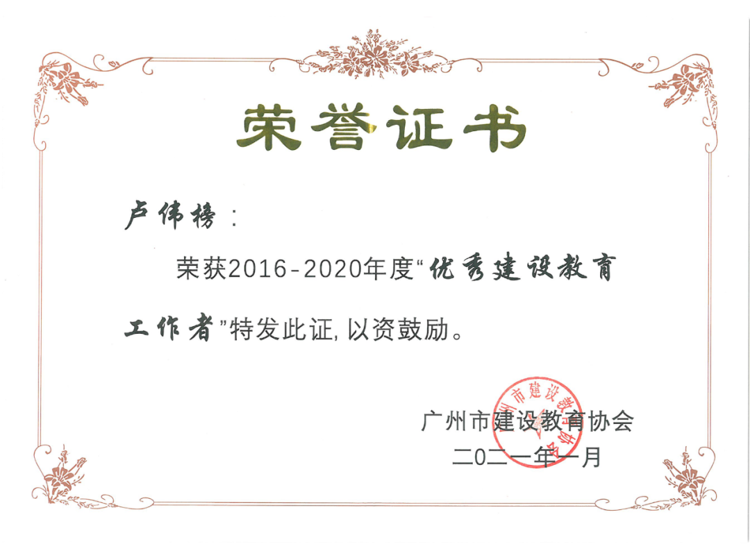 “优秀建设教育工作者”荣誉称号