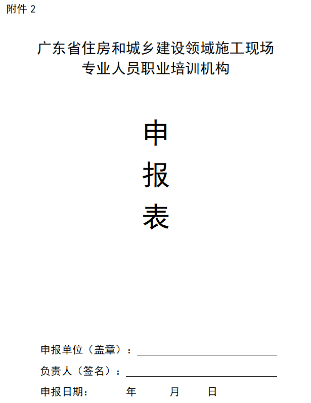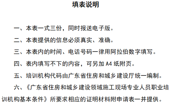 2.广东省住房和城乡建设领域施工现场专业人员职业培训机构申报表