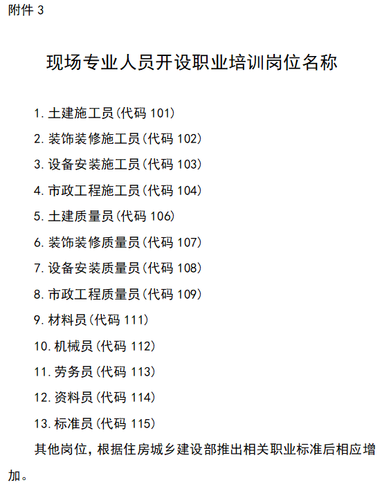 3.住房和城乡建设领域施工现场专业人员暂开设职业培训岗位名称