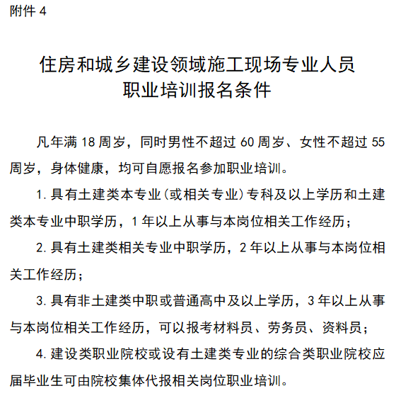 4.住房和城乡建设领域施工现场专业人员职业培训报名条件