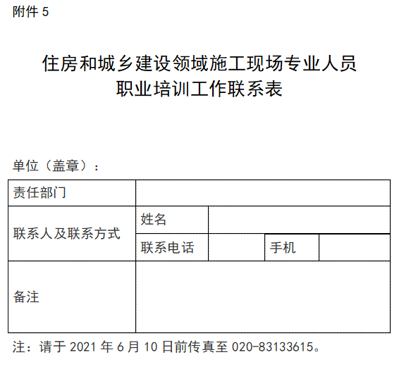 5.住房和城乡建设领域施施工现场专业人员职业培训联络表