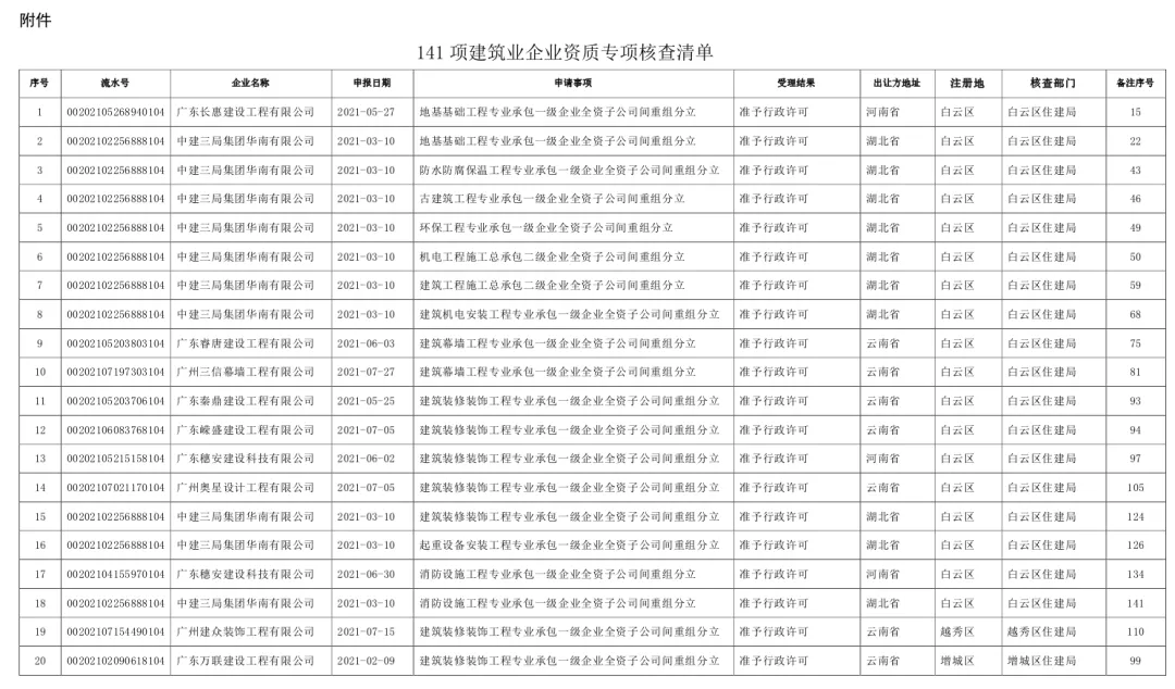 本次核查对象为 本年度通过重组分立方式将资质跨省迁入我市的企业 ,具体建筑业企业资质事项详见《141项建筑业企业资质专项核查清单》(以下简称《核查清单》)。