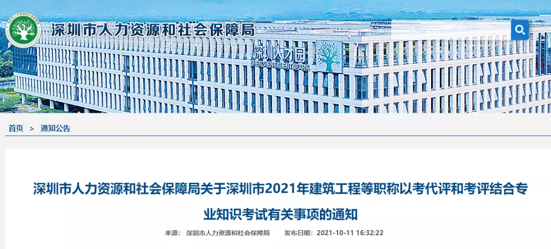 深圳市人力资源和社会保障局发布《关于深圳市2021年建筑工程等职称以考代评和考评结合专业知识考试有关事项的通知》,确定深圳职称考试安排。