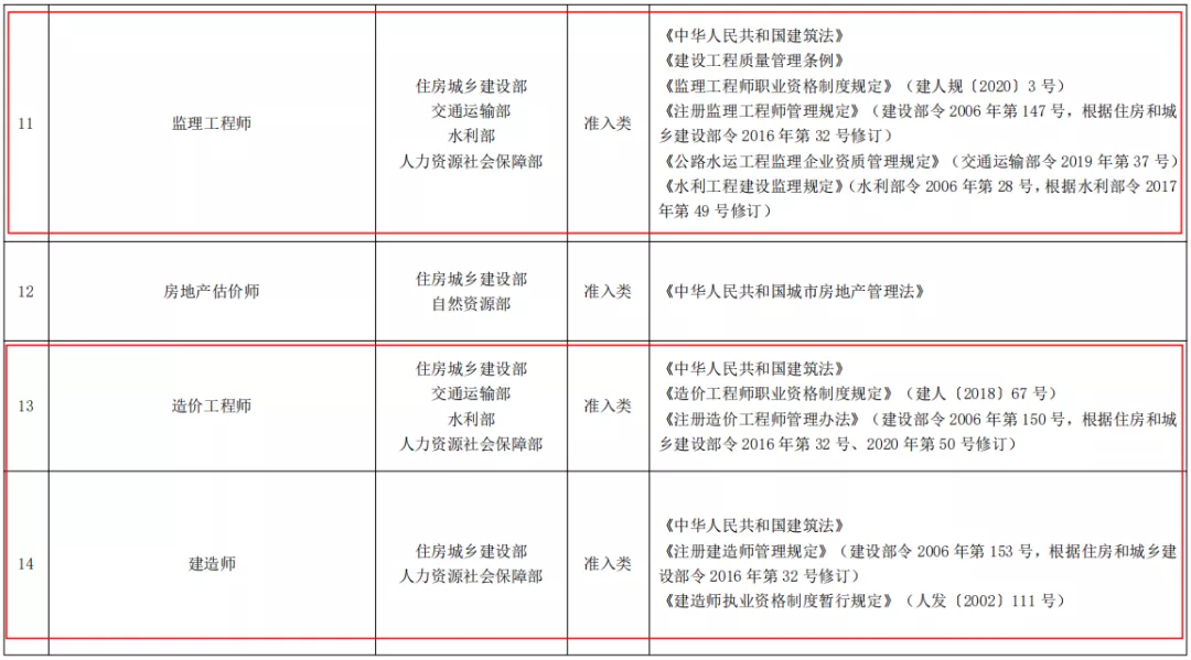《国家职业资格目录(2021年版)》中,与建设领域相关的职业资格有15项,具体如下: