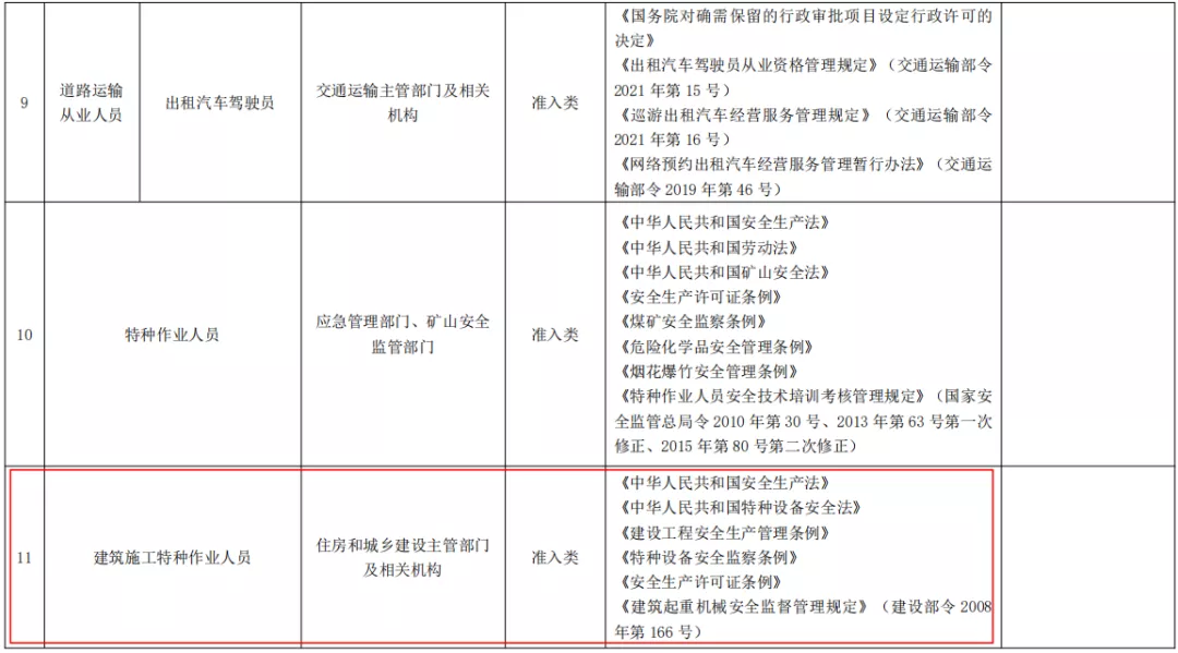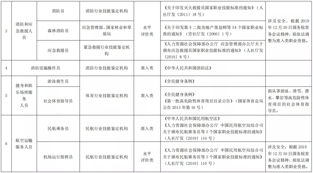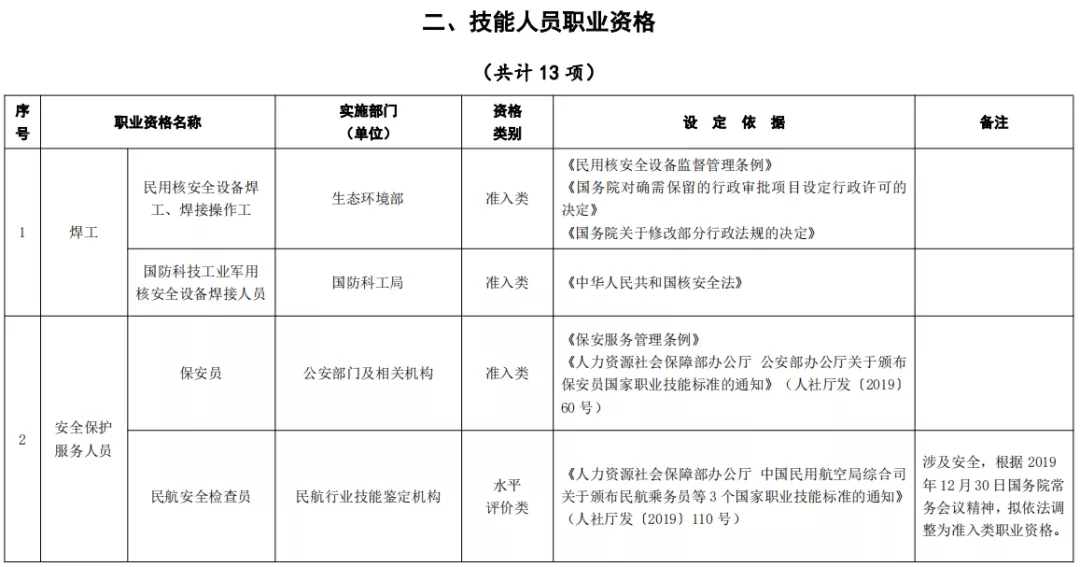 ,特种设备安全管理和作业人员等涉及人员资格的行政许可事项作为准入类技能人员职业资格纳入目录。