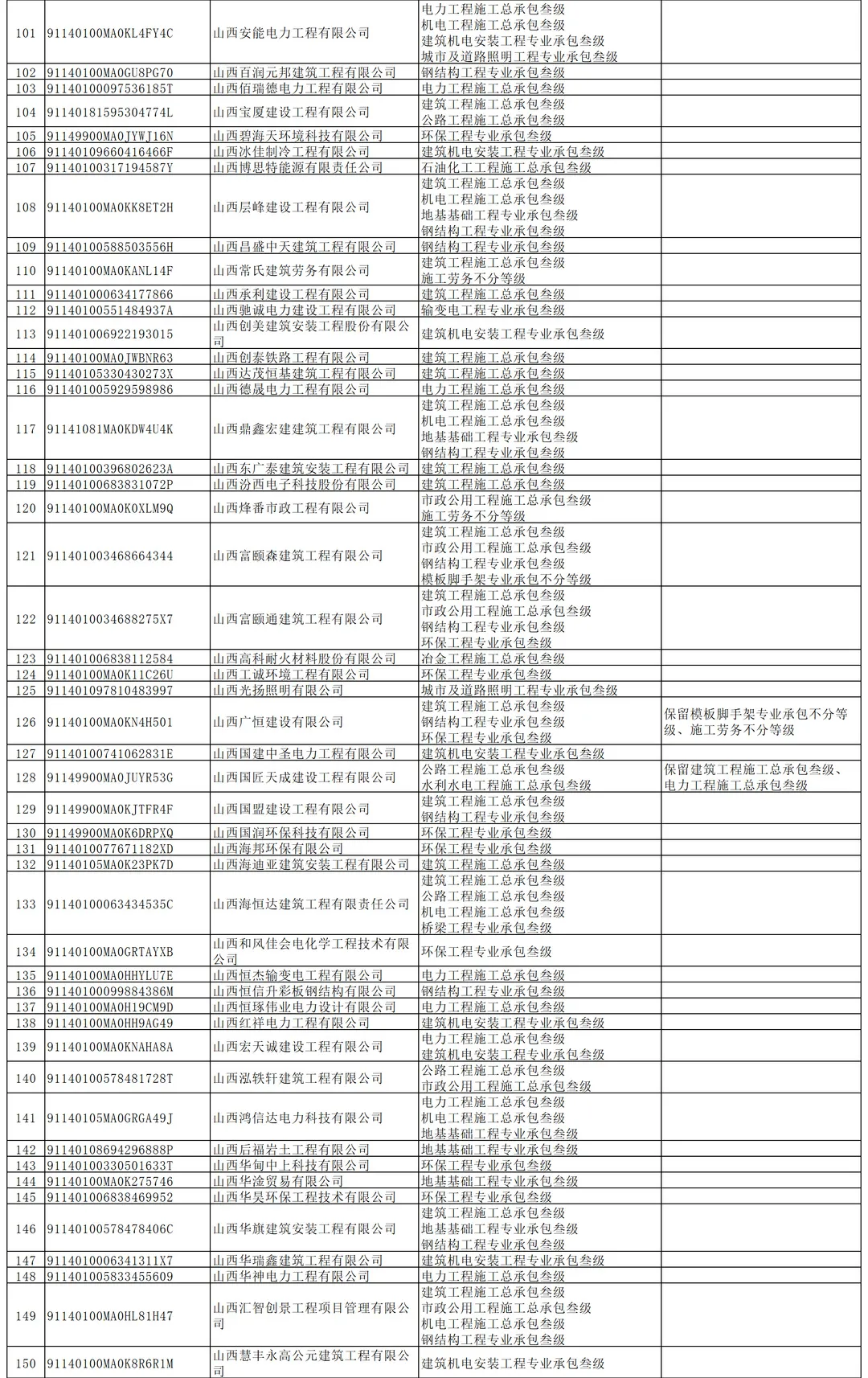 关于撤回山西绿宇环境科技有限公司等173家企业相关资质的公告