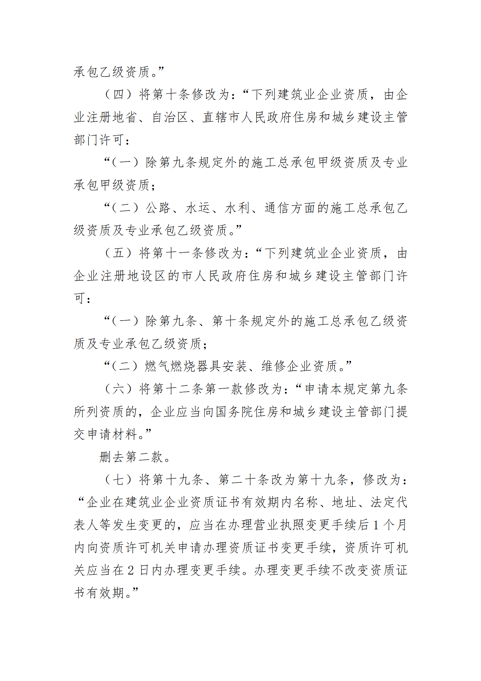 公开征求意见的通知,为落实建设工程企业资质管理制度改革要求,住房和城乡建设部决定修改以下部门规章: