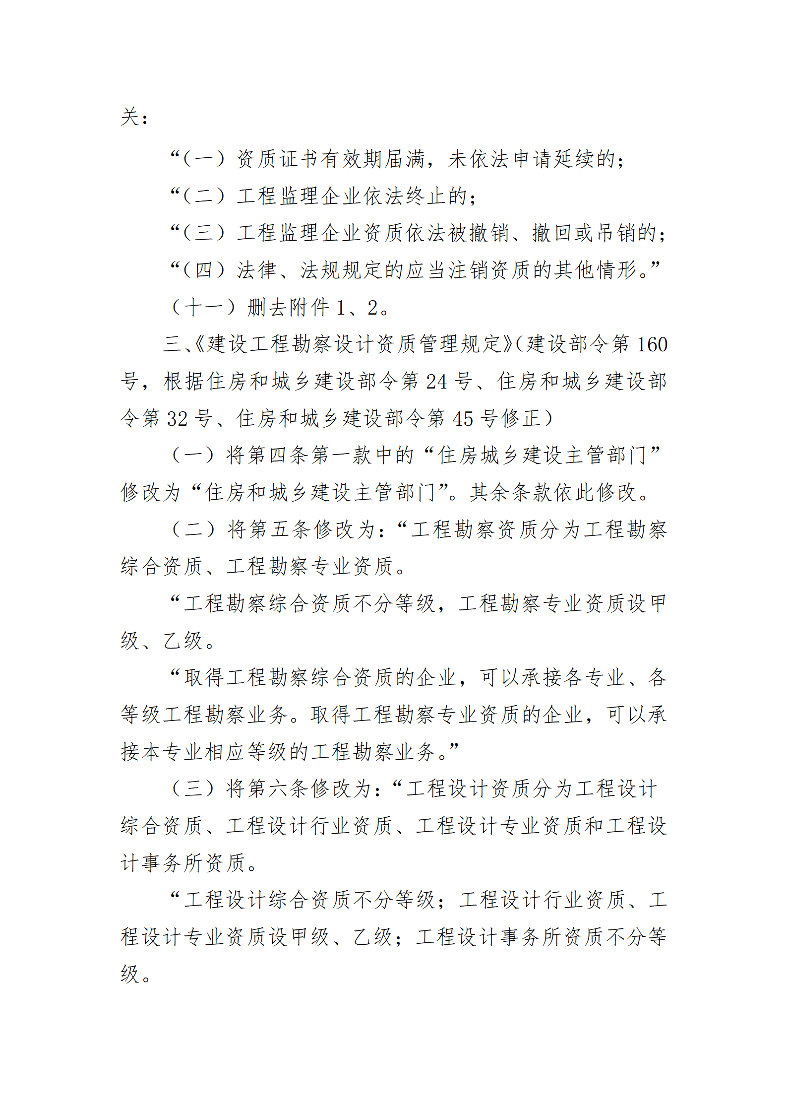 附件1:住房和城乡建设部关于修改《建筑业企业资质管理规定》等三部规章的决定(征求意见稿)