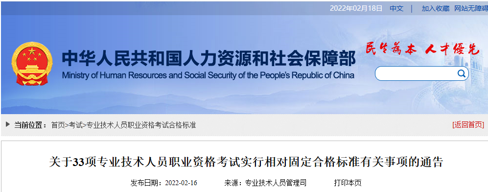 日前,人力资源社会保障部办公厅印发《关于33项专业技术人员职业资格考试实行相对固定合格标准有关事项的通告》, 决定自2022年度起 ,将 实行相对固定合格标准的专业技术人员职业资格考试 由17项增至33项。