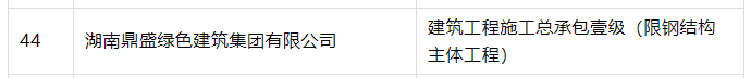 湖南省有1家企业成功申请建筑工程施工总承包壹级(限钢结构主体工程)资质。