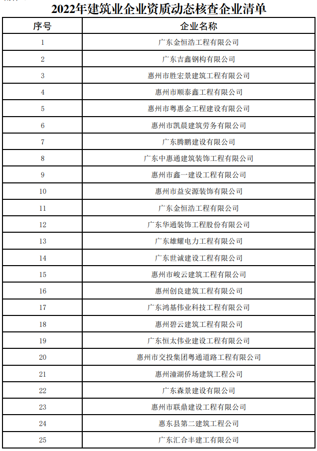 近日,惠州市住建局发布了关于建筑业企业资质动态核查工作的通知。