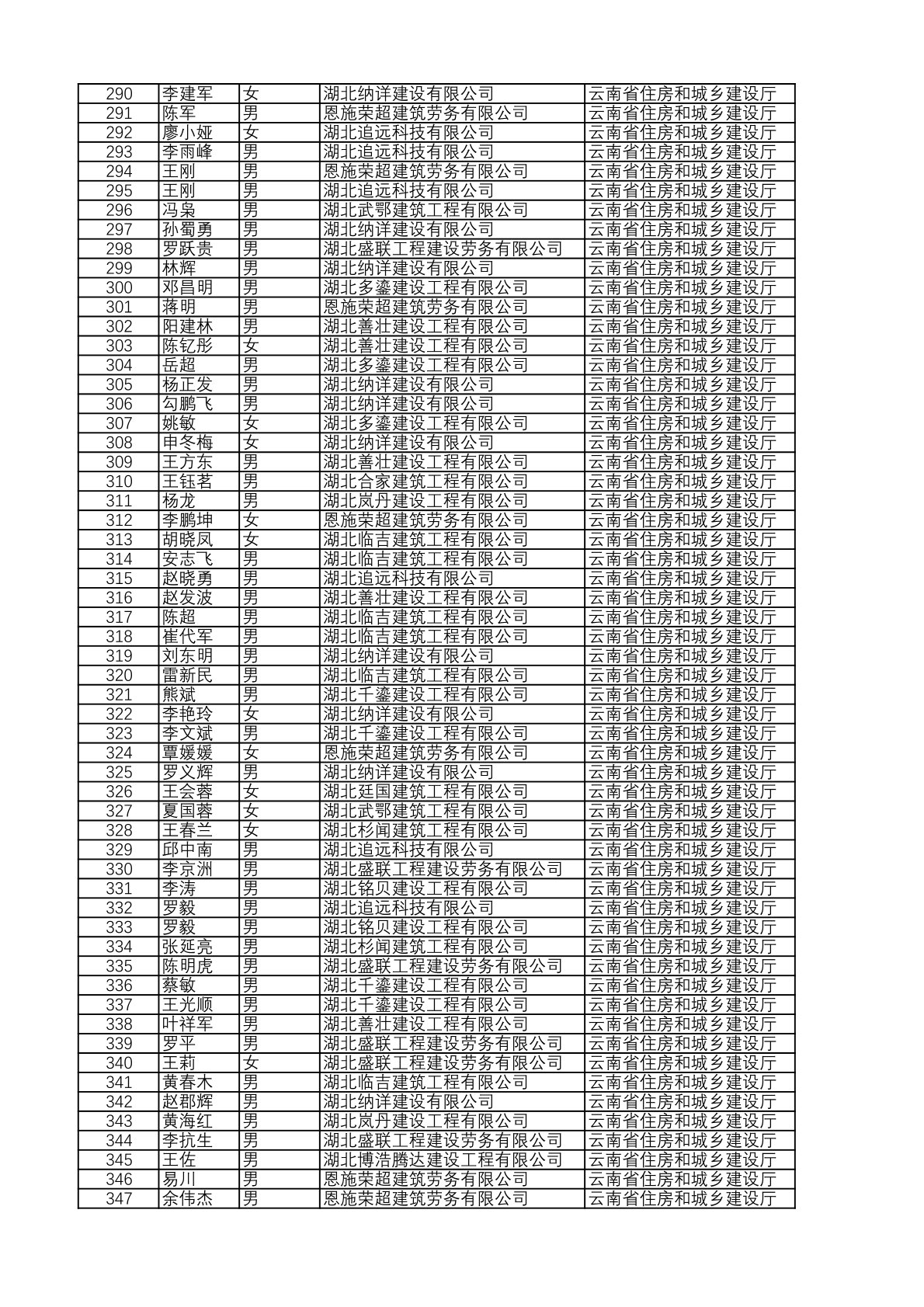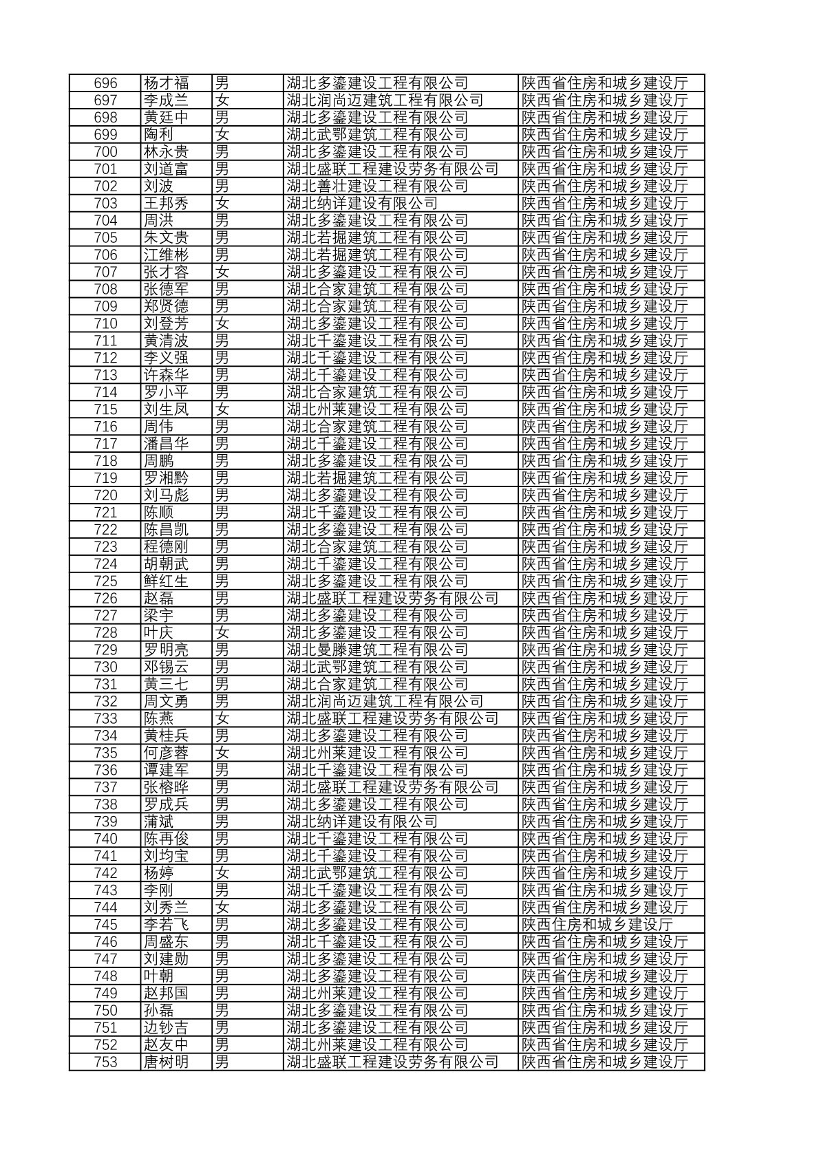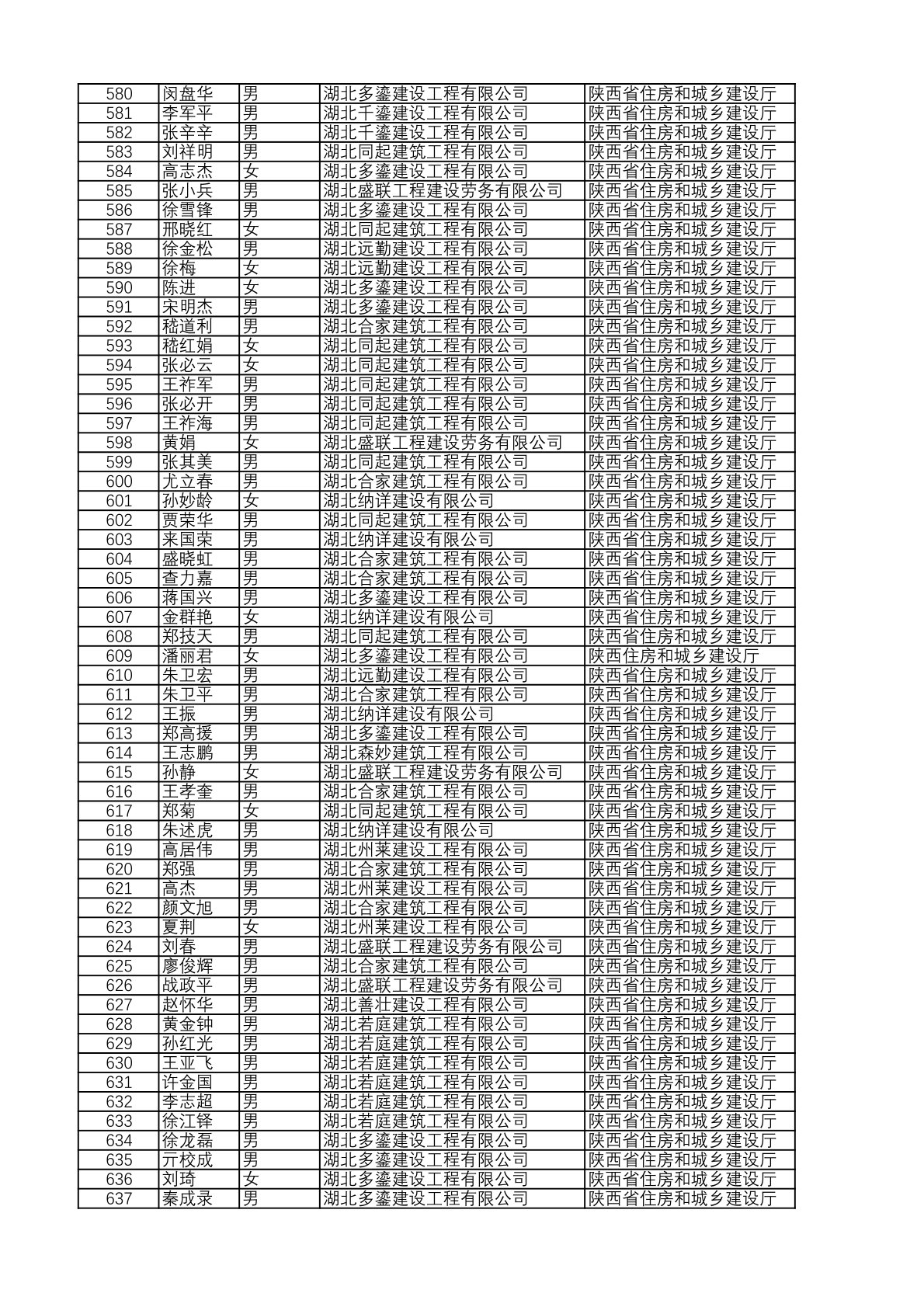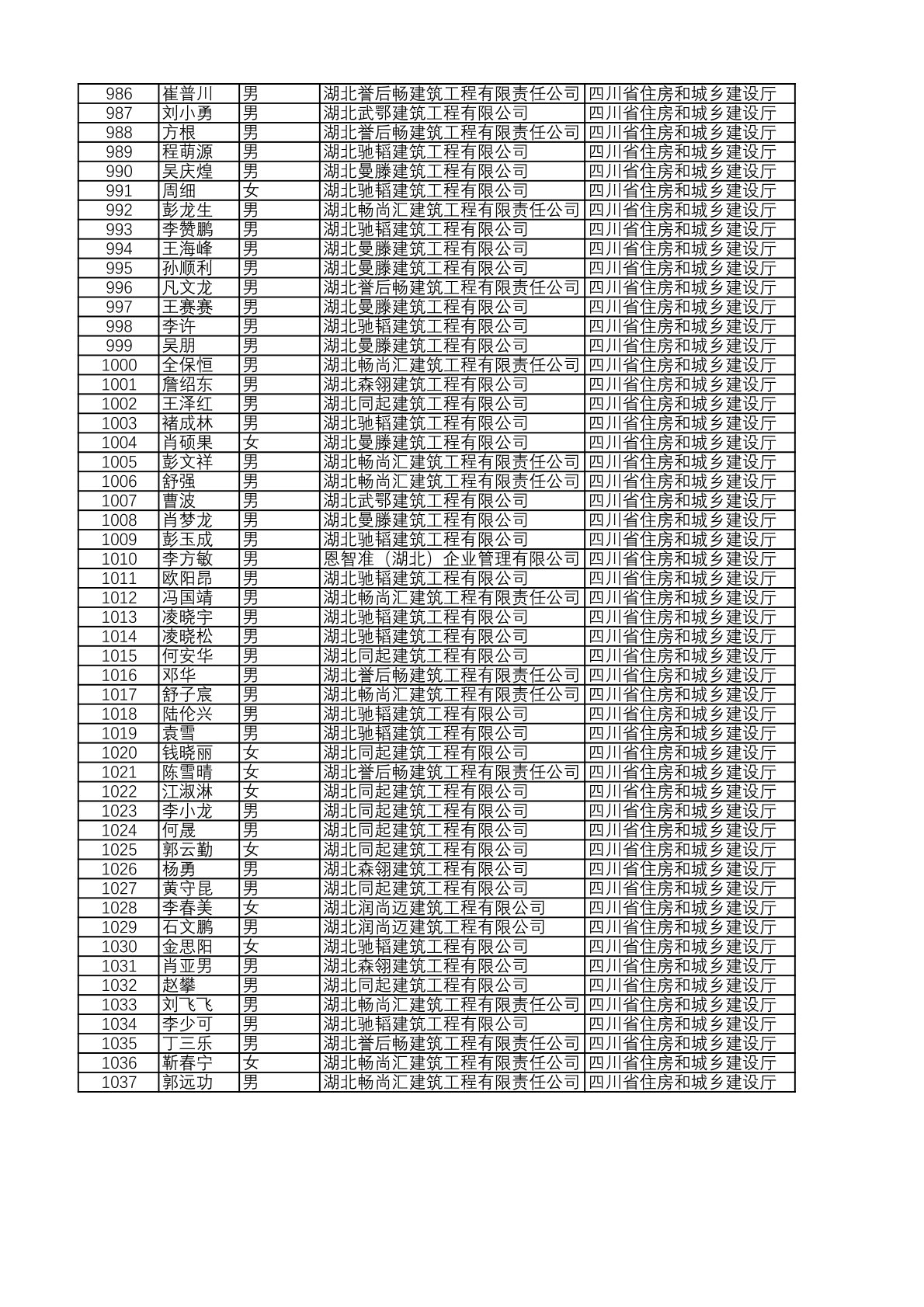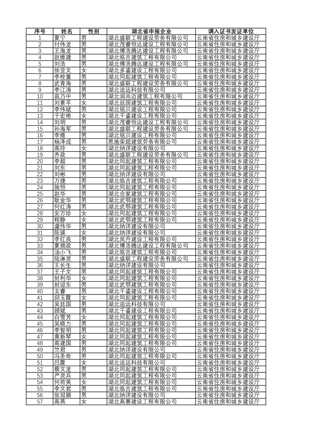 经办理跨省转入湖北安管人员夏宁等1037人的申报资料存在隐瞒欺骗的情形,现云南省、陕西省、四川省住房和城乡建设厅回函已确认为假证。根据《建筑施工企业主要负责人、项目负责人和专职安全生产管理人员安全生产管理规定》(住建部令第17号)和省厅文件的规定,现将夏宁等1037人的“安全生产合格证”假证给予撤销。 以上人员3年内不得在我省申请办理安管人员安全生产考核合格证。