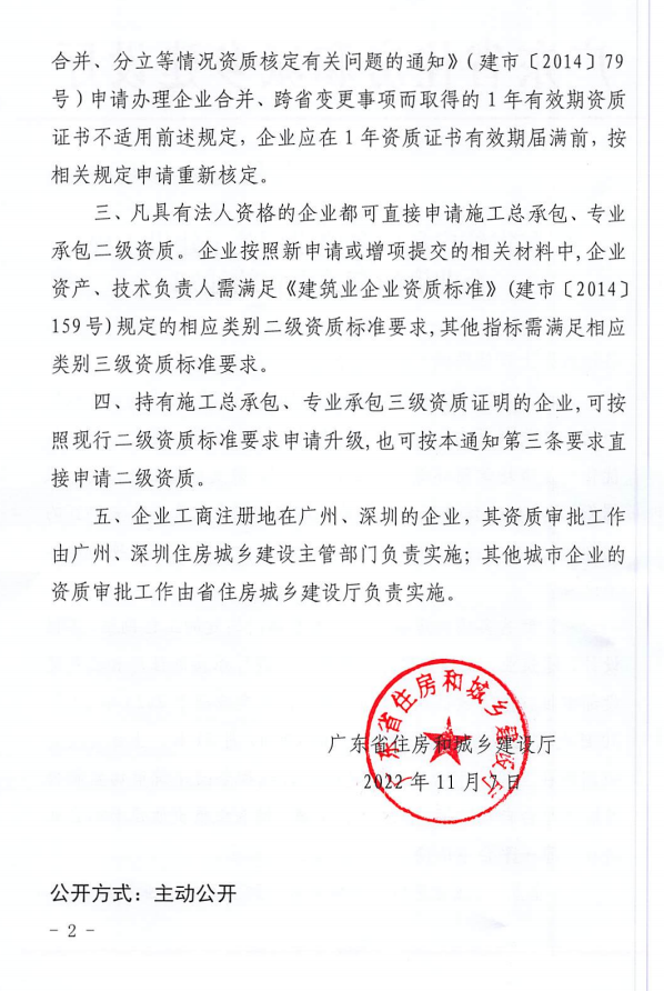 韶关市住建局:专业承包二级资质(不含铁路、民航)由我局实施