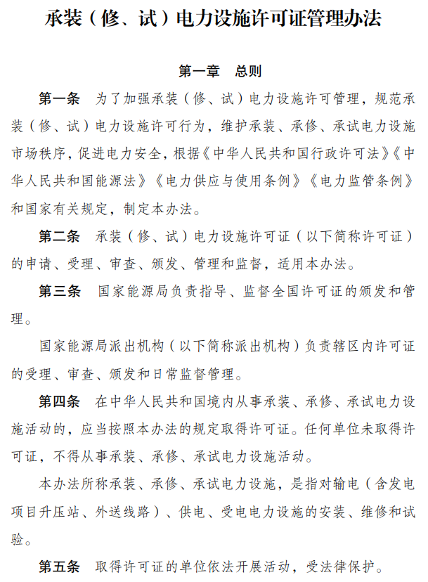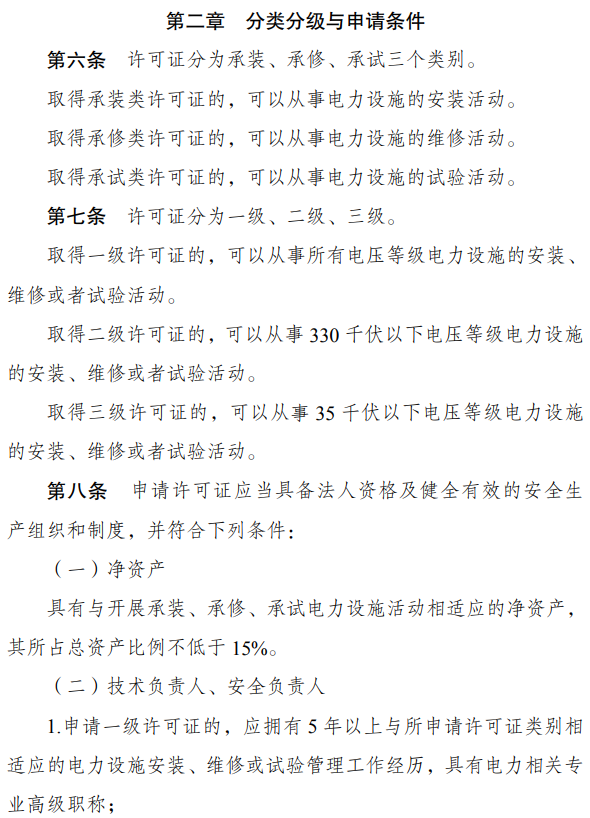 相关阅读:《承装(修、试)电力设施许可证管理办法》