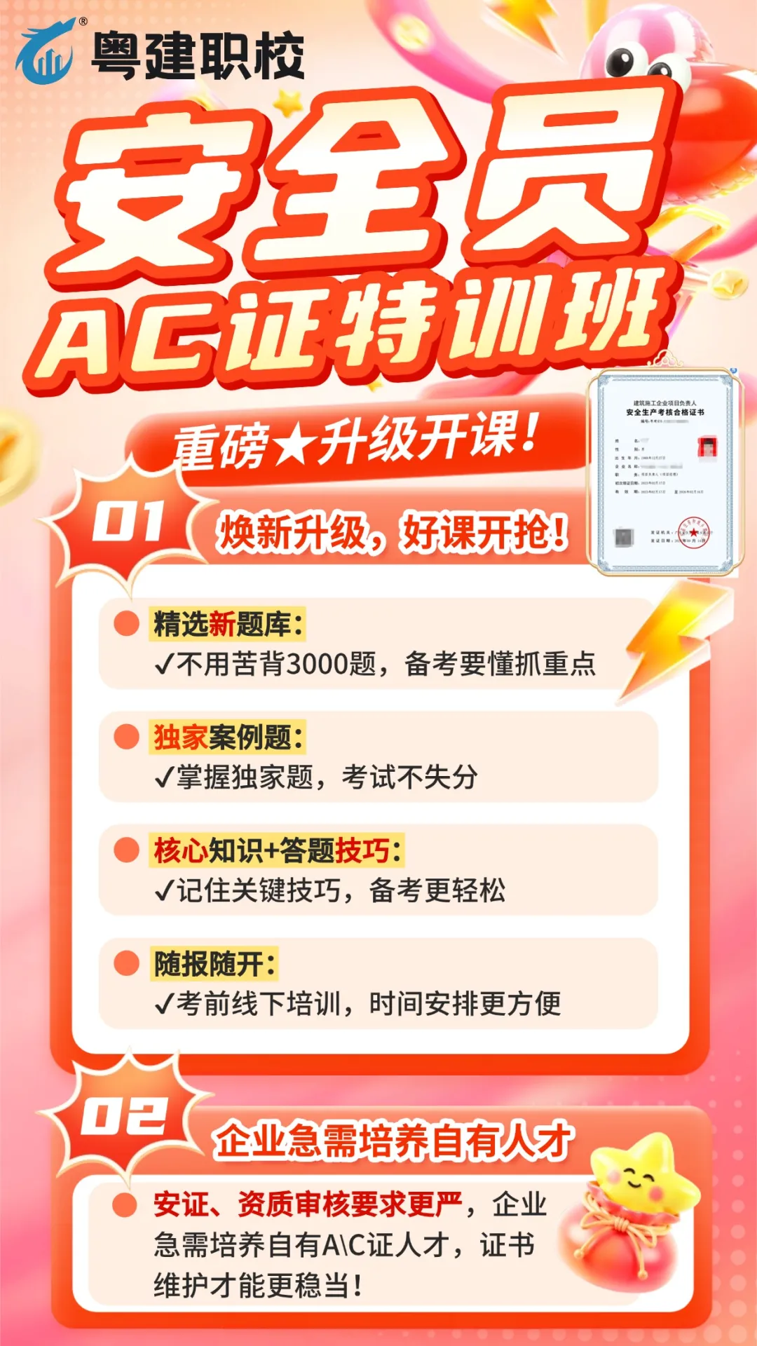 一建师、高工本身已满足学历、职称要求,参加集团成员单位-粤建职校的特训班,不用死背3000道题,只记精选题加上答题技巧,考证不是大问题,对比其他证书性价比极高。