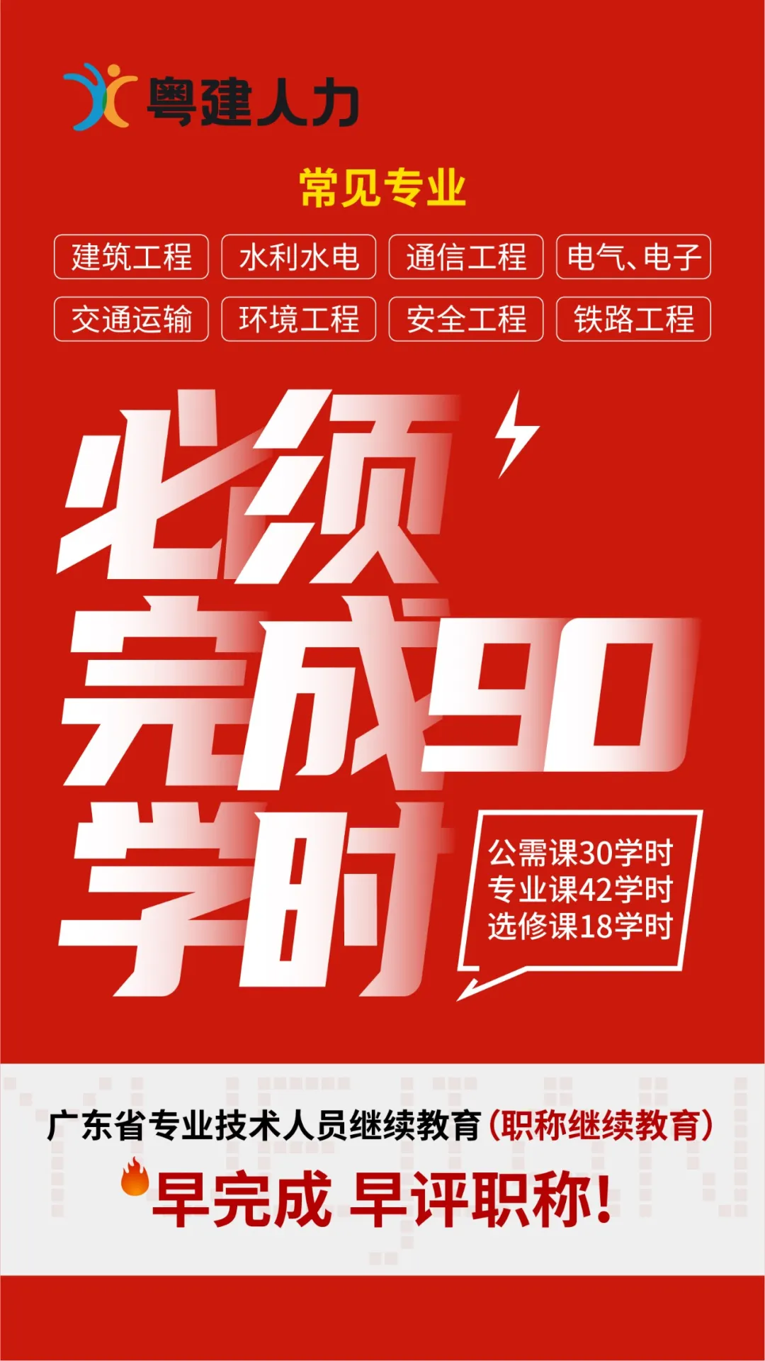 (一)学时要求。根据人力资源社会保障部令第25号、省人力资源社会保障厅《关于专业技术人员继续教育证书的管理办法》等有关规定, 2025年,我省专业技术人员参加继续教育的时间每年累计应不少于90学时,其中,专业科目不少42学时。