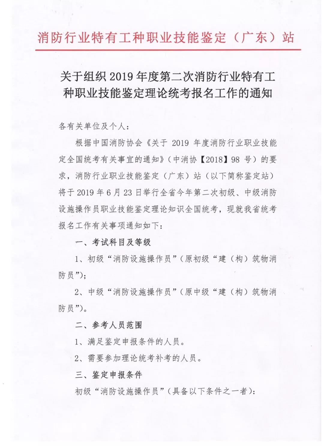 参加广东2019年第二季度消防设施操作员理论统考通知
