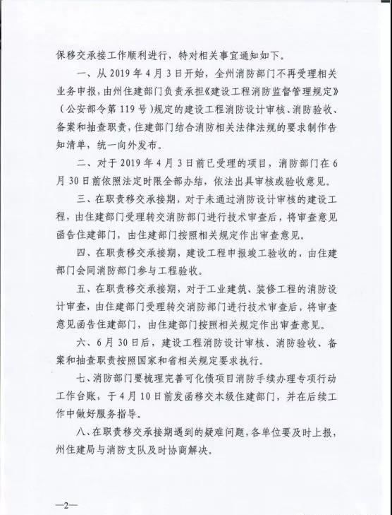广东省消防总队关于移交建设工程 消防设计审查验收职责的通知