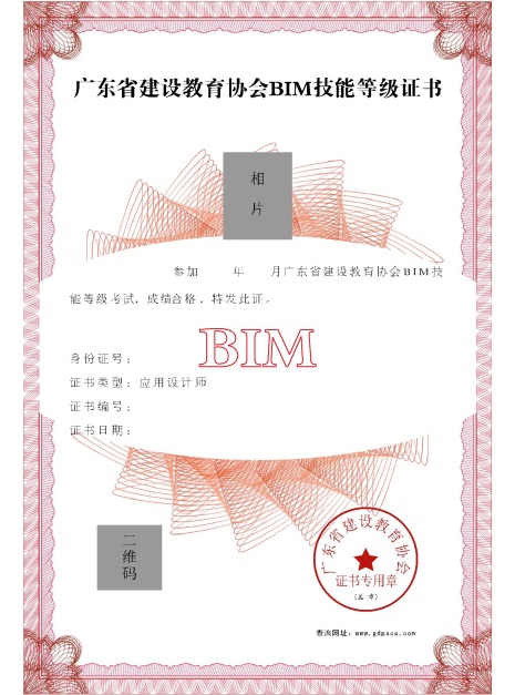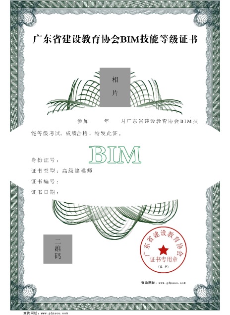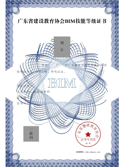 经考试合格者,将会获得由广东省建设教育协会统一式样、统一印刷、编号并发放、管理的《广东省建设教育协会BIM技能等级考评证书》。