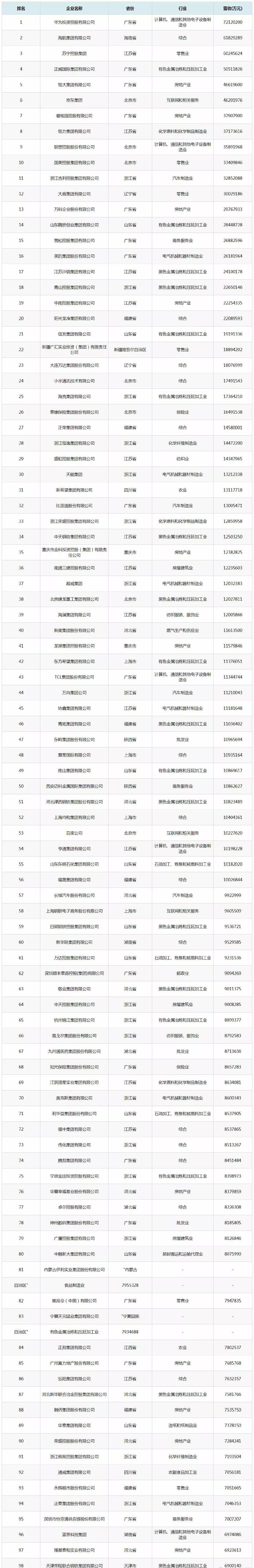 其中,华为投资控股有限公司以7212亿元年营业收入蝉联民营企业500强榜首、民营企业制造业500强榜首,资产总额超过1000亿元的企业有76家,比上年增加15家。