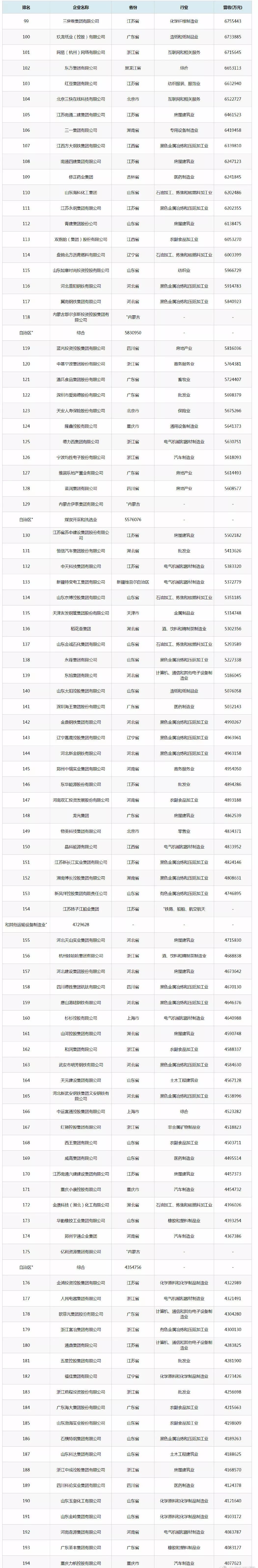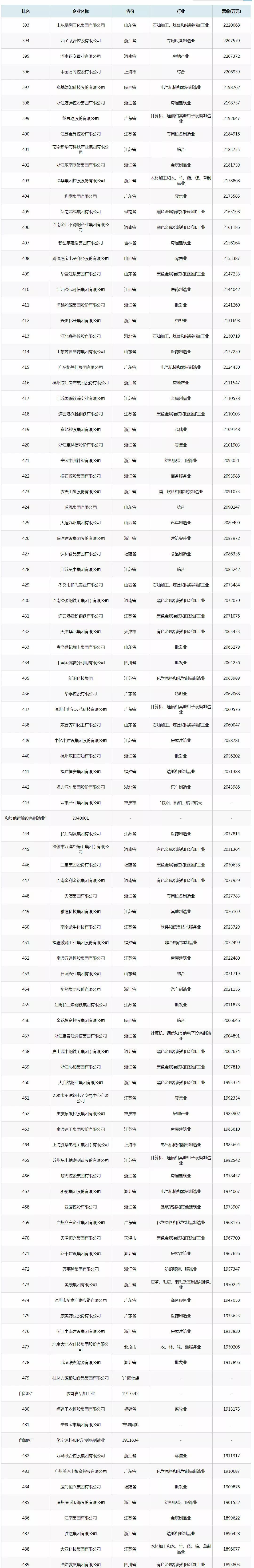 500强各省、市、自治区和兵团上榜企业中,浙江92家,江苏83家,山东61家,广东60家,河北33家,福建22家,湖北18家,北京17家,重庆15家,上海15家,河南13家,辽宁11家,四川11家,湖南7家,山西7家,江西6家,天津6家,陕西5家,内蒙4家,新疆2家,宁夏2家,吉林2家,广西2家,安徽2家,海南1家,黑龙江1家,贵州1家,新疆生产建设兵团1家。云南、甘肃、青海、西藏没有企业上榜。